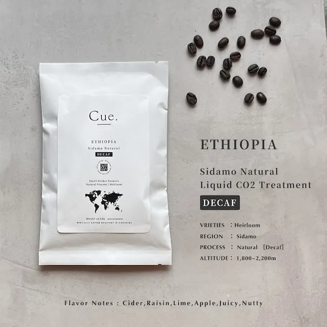 エチオピア シダモ地区の良質な豆を、液体CO2製法という方法でカフェインを取り除いたデカフェです。 従来あったデカフェ独特のにおいがせず、通常のエチオピアの豆と同等の味わいが楽しめます。 妊娠中や授乳中など、カフェインを控えている方でもおいしいシングルオリジンコーヒーを楽しんでいただけます。 生産地域 :エチオピア シダモ県 品種 :エチオピア在来種(原生種) 精製方法 :ナチュラル 液体CO2精製 カップ :シトラス、マスカット、ホワイトピーチ *こちらの商品はご注文いただいてから焙煎しますので、煎りたての新鮮な状態でお届けします。 *浅煎りから深煎りまで、お好みのローストレベルに仕上げます。オプションよりお選びください。