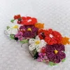 日本にもたくさんのOYA刺繍作品が普及していますが、独自のやり方で花と花を重ねていき、だれもやらないお花アートです。リサイクル生地もたくさん利用しています。