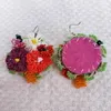 oya刺繍ピアス フルーツとお花のパラダイス 伝統工芸品 1点もの 1129