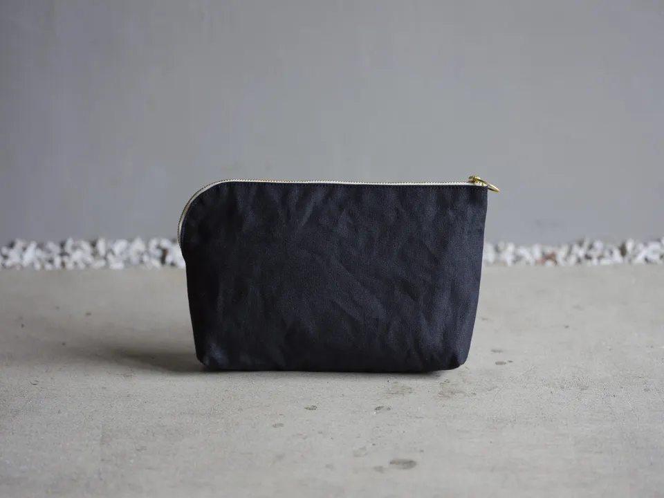 マスクの収納、小物入れとしても活躍するポーチ。 裏地に抗菌・抗ウイルス機能繊維加工技術クレンゼ®︎で固定化抗菌成分Etak®︎を繊維表面に固定化して加工した抗菌生地を使用。繊維状態の細菌を抑制し、マスクを清潔な環境で保管できます。 ■表地:倉敷帆布 帆布の持つナチュラル感を黒でスタイリッシュに。 11号の帆布は、ほどよいハリとしなやかさに長けているのが特徴。耐久性に優れ、水に濡れても浸透しにくく通気性がある。 ■裏地:抗菌素材 ・抗ウイルス機能繊維加工技術クレンゼ®︎を採用。 ・50回洗濯しても繊維上の特定のウイルスの数を99%以上減少。 ・ニオイの原因となる繊維上のモラクセラ菌や黄色ブドウ球菌などに対する細菌の増殖を抑制します。 ■仕様 ・ゴールド色のファスナーにすることでシンプルかつスタイリッシュなデザインに。 ・引き手のリング部分にお好みのリボンやキーホルダーをつけても。 ・中身の出し入れがスムーズに、ファスナーの端をラウンド仕上げ。 ・内ポケットは使用済みのマスク入れに。仕切りにカラーのパイピングを施しました。 ・マチがあるので立体的で収納しやすい。