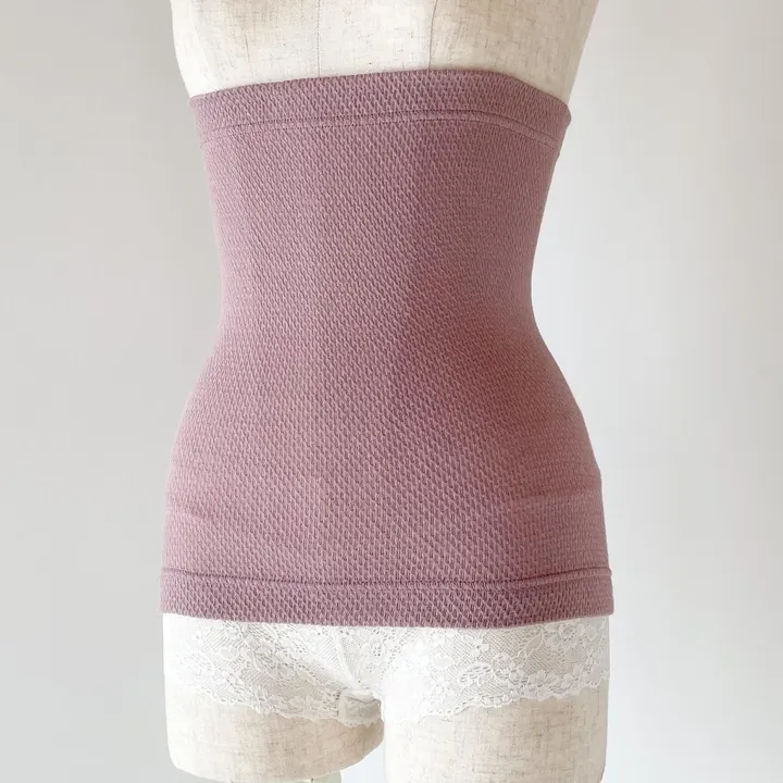ふんわりとした陽だまりのような温かさで、心と体にそっと寄り添ってくれる腹巻です。 上下端はゴムを使用せずに折り返し始末にすることでくるくる巻き上がってきたり、ずれ落ちてしまう心配もゼロ。面で支えることで締めつけ感がなく、まるでなにも着けていないかのようなエアリーさは”素のままの自分”に素直になれる体感です。素肌に馴染むグレイッシュなカラーもポイント。 みぞおちあたりから鼠径(ソケイ)部あたりまで、しっかりと包み込む安心感のある長さが特徴。身体の曲線を美しく⾒せながらフィットし、心を解き放つような着けごこちです。 お洋服にもひびきにくく、汗ばむ季節も、肌がカサついたり敏感になる季節、気持ちがデリケートな時にも、さらっとノンストレスで着⽤いただけます。 マタニティから産後にもご使用いただけます。(妊活中、妊娠初期〜中期、産後におすすめ) 【生地タイプ】 薄手・ゆったりフィット・春夏向き 【スフレワッフル生地】 スイーツのスフレのように、空気をたっぷりと含んだふわふわのワッフル生地。 繊細で薄くシアーな風合いは、細い40番手の糸に仕上げたエンバランス糸を、日本に数台しかない貴重な編み機でゆっくりと編み上げ実現。 身も心もそっと触れるように包み込み、やわらかく軽やかな肌ごこちが特徴です。 【特殊繊維エンバランス糸】 心地よい温かさが持続する “ 遠赤外線効果 ” と 、汗や加齢臭・アンモニア臭などの嫌なニオイをケアする “ 消臭効果 ” のある「エンバランス糸」を使用しています。 【安心の日本製】 1.自社オリジナル企画・パターン 新しい腹巻きのかたちをモットーに、日常に馴染む腹巻を素材、カラーなど1から企画。また、生地の特性を最大限に活かし“着心地の良さ”に細部までこだわり抜いた自社オリジナルパターンを使用。 2.自社縫製工場にて縫製 生地の特性を最大限に活かした縫製。着用したときの違和感が極力ないようにする、高度な縫製技術を持つ縫製職人によって1枚1枚丁寧に、大切に縫いあげられています。