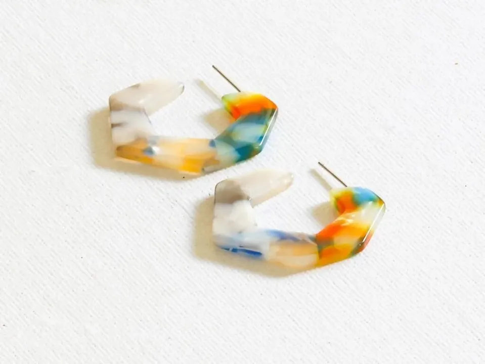 1809 Zori 樹脂 3 トーン ヘキサゴン フープ ピアス BLUE - MULTI