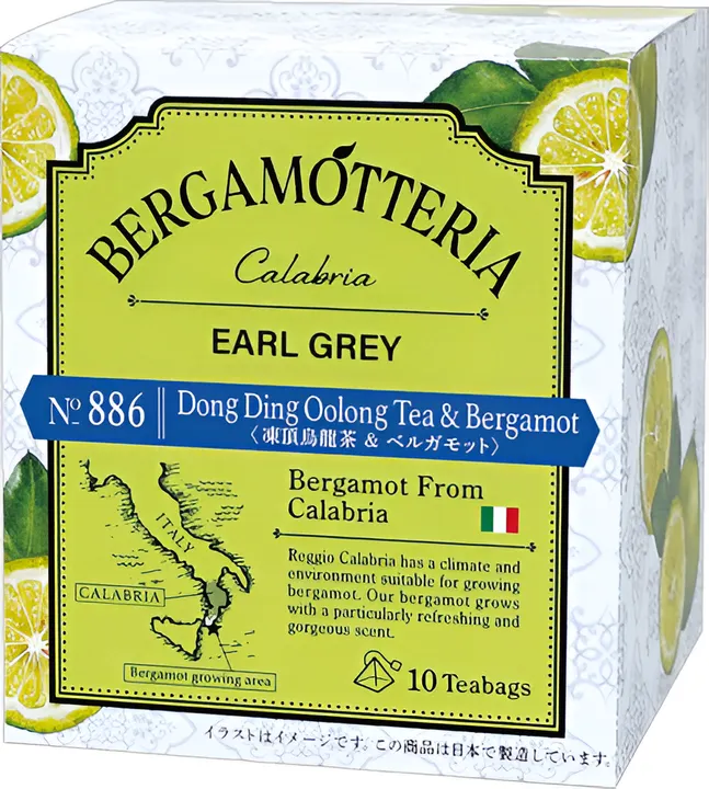 凍頂烏龍茶にベルガモットピールをブレンド。台湾を代表する銘茶で、蘭に似た香りの凍頂烏龍茶にベルガモットが香る、香り高いアールグレイ。 【BERGAMOTTERIA】 “BERGAMOTTERIA(ベルガモッテリア)” はイタリア語で「ベルガモット屋」を意味する、ベルガモット専門ブランドです。 。ベルガモットは華やかで爽やかな香りをもつ柑橘系フルーツで、その華やかな香りはアロマオイルや香水としても親しまれています。“BERGAMOTTERIA” ではイタリア レッジョ・カラブリア県のオーガニック ベルガモットピールを直輸入し、華やかなベルガモットの香りを楽しめる、ベルガモットの魅力を広げるブランドとして立ち上がりました。
