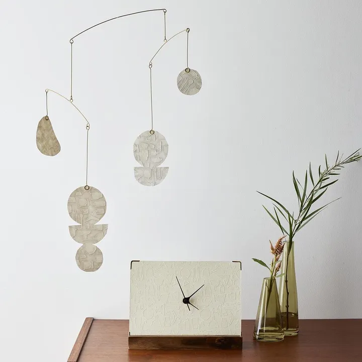 職人が一枚一枚丁寧に手漉きした越前和紙を使用した壁掛け時計です。縦でも横でも使用できるデザインで、スタンドなしで壁掛けとしてもお使い頂けます。スタンド部分には厚みのあるアカシアウッドを使用し、インテリア性を高めるとともに、しっかりとした安定感を提供。さらに、スタンドはフォトスタンドやポストカードホルダーとしても利用可能です。同シリーズのF161369越前和紙を使用した万年カレンダーとサイズを合わせているため、セットでお使いいただくと統一感のある上質な空間を演出できます。和紙にあしらったモチーフはshesayの人気アイテム達。shesayで長く愛されてきたアイテムと長い伝統を守り今も続く越前和紙。shesayのアイテムも同じように長く普遍的に愛されるアイテムに育って欲しいという願いを込めてつくりました。 古くから日本の暮らしの中で親しまれてきた和紙。かつては書道や障子、襖紙などに使われ、身近な存在でしたが、時代の変化とともにその姿を目にする機会が少なくなりました。その中で、福井県越前市では1500年の伝統を守り続け、当時と変わらない同じ原料、同じ道具で手漉き和紙を継承し続けています。手漉き和紙は、三椏(ミツマタ)・楮(コウゾ)・雁皮(ガンピ)など、日本独特の植物を原料とし、1枚1枚が手作業で作られるため、一つとして同じものはありません。