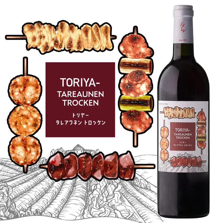 【焼鳥(タレ)に合うワインとは?ついに「正解」見つかりました!】 炭火で焼かれた香ばしい鶏肉にタレを絡めた焼き鳥。 それに合わせるお酒の「正解」がついに見つかりました。 それがこのトリヤー タレ アウネン トロッケン。 甘酸っぱい果実のニュアンスたっぷりの赤ワインが、 焼き鳥の香ばしさをときに引き立て、ときに寄り添います。 タレで味わう焼鳥とクヴェヴリ発酵貯蔵のマスカット・ベーリーAが織りなす絶妙なペアリングをお楽しみください。 ◎おススメの飲み方 ・炭火でこんがり焼かれたあっさり系の焼き鳥と至高の相性! ・レバー串との相性はまさにマリアージュ級 ・滋味深い味わいは和食全般と合わせやすい ・爽やかな酸味はこっくり煮込んだ鶏肉のお酢煮にも