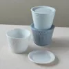 水面に広がる小波のような美しい凸凹が目を惹く器。 青みがかった神秘的な艶あり白と、落ち着いた上品なマットなブルーグレー。 和テイストな料理にぴったりの器です。 種類は取り鉢(13cm)、21cm深皿、小皿(9cm)、猪口、どんぶりがあります。