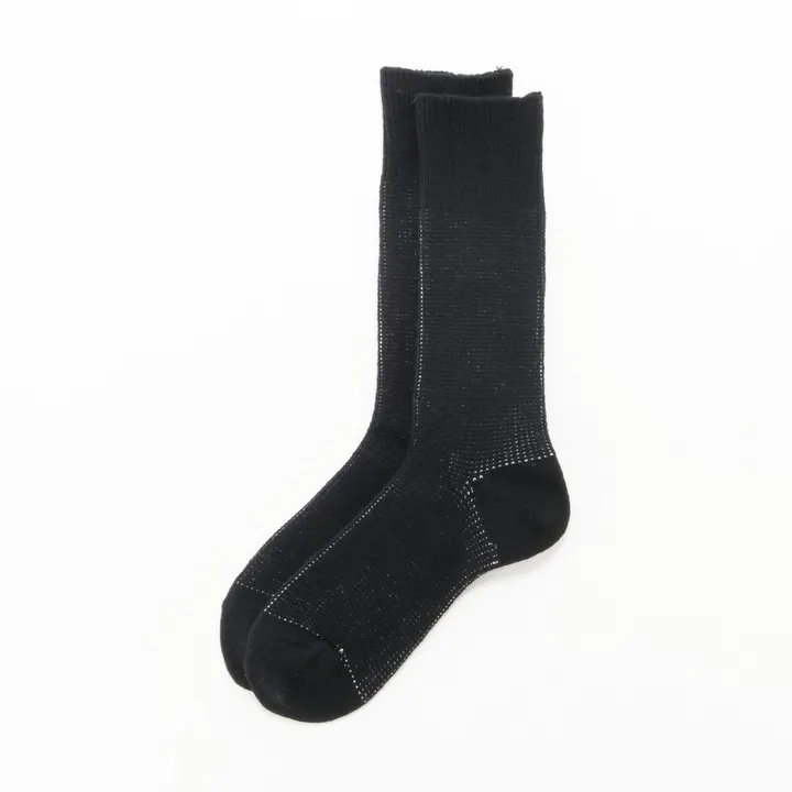 タスマニア産のラムウール、NASAのために生まれた温度調整素材を練りこんだウール、2種のウール素材を使用した靴下。タスマニア産の生後5〜7ヶ月の子羊が生まれてから1度も刈られていない毛を使用。 日本と同様に四季があるタスマニア島は年中通して冷涼な気候が続くウールの生産に適している産地。1800年代、スコットランド人によってロンドンの市場向けに高品質ウールの品質改良が始まった。 オーストラリア国内の羊飼育産業では、タスマニア産の種羊は大きいシェアを占めている。 64%WOOL.22%ACRYLIC,6%NYLON,6%POLYESTER,2%POLYURETHANE 日本製