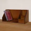 北海道 旭川市の自社工場で製作しています 卓上で圧迫感のないサイズ。 ペンスタンド付きなので、 文具を入れたり、メガネを立てるのに丁度良い。 文庫本や辞書を入れるのに丁度良いサイズです。 ■商品サイズ 本体外寸 約 横幅360×奥行150×高さ170mm (板の厚みなどで多少の誤差が出る場合があります) ■材質:合板