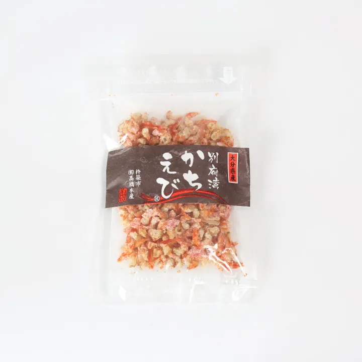 日本国内のえびの水揚げ量は年々下降の一途を辿っており、希少価値が非常に高くなっています。 赤えびは主に瀬戸内海で水揚げされますが、中でも別府湾産の赤えびは、豊後水道の流れの速い海流で育つため、旨味が強いのが特徴です。 さらに美味しさのカギとなるのが、鮮度を保持する加工の技術とスピード。 獲れたてのえびを丁寧に水洗いした後、釜茹で・乾燥・殻剥きを行いますが、その全工程を6時間程で完了させます。 高橋水産のかちえびの噛めば噛むほど香り・旨味が口中に広がる仕上がりは、この短時間での加工によって生まれます。瀬戸内の塩だけで味付けし、添加物は一切使用していません。 そのまま食べるだけでなく、酢の物やお吸い物の具や小さく刻んでサラダのトッピングに、炊き込みごはんやちらし寿司にもおすすめ。めんつゆに使えば、えびのだしが効いた美味しいつゆが作れます。