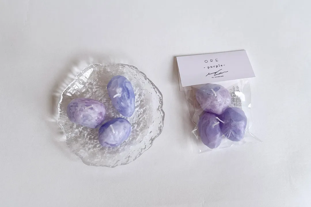 英語で「鉱石」という意味のore 1時間ほどの小さな灯りの、カラフルで小さな石のキャンドルです 心身をリセットするのにちょうどいい 朝の一息や、就寝前の自分時間にお使いいただくのもおすすめです 小さく彩りの良い、見た目にも可愛いキャンドルで ちょっとしたプチギフトやインテリアのアクセントにも◎ /////////////////////////////////////////////////// お好みの色と香りをお選びいただけます 〈ライトローズと無香料〉 〈ターコイズと無香料〉 〈パープルと無香料〉 無香料なので香りが気になる方、シーンを問わず使用したい方にはおすすめです 灯火の持つ力を体感していただけます 〈ライトローズ・香り / ローズ〉 ローズの香りで、華やかで気分を盛り上げてくれます 〈ターコイズ・香り / シトラス〉 香りはすっきりとした爽やかでフレッシュな 誰もが好む、万人に愛される柑橘系の香りです 〈パープル・香り / ラベンダー〉 心のバランスを整え、落ち着いた気持ちにさせてくれる効果があると言われています ———————— size:底 / 縦横ともに20〜30mm×高さ約20mm前後 material:パラフィン、マイクロソフトワックス、香料、綿芯 燃焼時間:約1H(気温・空調・環境により異なる) ———————— Made in Japan ・・・・・・・・・・・・・・・・・・・・・・・・・・ 『ひいらぎキャンドルの〈designed〉』 「デザイン」に焦点を当てた、 初心者さんにもおすすめの遊び心のあるキャンドル カラフルな色使いのキャンドル 徹底的にシンプルにこだわったキャンドル ひいらぎキャンドルの『designed』シリーズは、 「デザイン」にこだわったキャンドルです 色遊びをしたり、モチーフ遊びをしてみたり 個性的なフォルムのキャンドルが出来上がり! もちろん、灯りの美しさも計算した作りで インテリアとしてだけでなく、是非そのヒカリを楽しんでください ・・・・・・・・・・・・・・・・・・・・・・・・・・ ひいらぎキャンドルでは、 キャンドルは一点一点全て手作業で作成しています。 キャンドル本体の製作だけでなく、ラベルやパッケージのデザイン、シールの貼り付け、 梱包など、キャンドルが生まれるところから旅立つまでの間の全ての制作作業を 自身で行なっております。 【ご注意点】 <こちらの商品は受注生産になります> ・香りの良い新鮮なものをお届けする為、注文を頂いてからお作りしています ・1つ1つ丁寧に作成しておりますがハンドメイドの為に画像と同じ作品は作れません 手作業のため大きさに多少の誤差・お色味や形状が若干異なる場合がございます ・お客様よりご注文を頂いてから、すぐに製作に入らせて頂きます 途中でのデザインや素材など一切の変更、製作のキャンセルはお受けすることが出来ません ・注文日より1週間以内に発送しておりますが、 お急ぎの方・ご希望納期のある方は必ず事前にお知らせ下さい。 配送地域、交通事情、素材の在庫等の理由により遅延する場合がございます お届けまでに2週間ほどかかる場合もございます どうぞ余裕を持ってご購入くださいませ ○火を取り扱う製品となります。「attention」という注意事項を同封致しますので、 必ずお読みいただきご使用下さいますよう宜しくお願いいたします。 ※当店のキャンドルをご使用の上で起きた事故についての責任は負いかねます※ 予めご了承ください