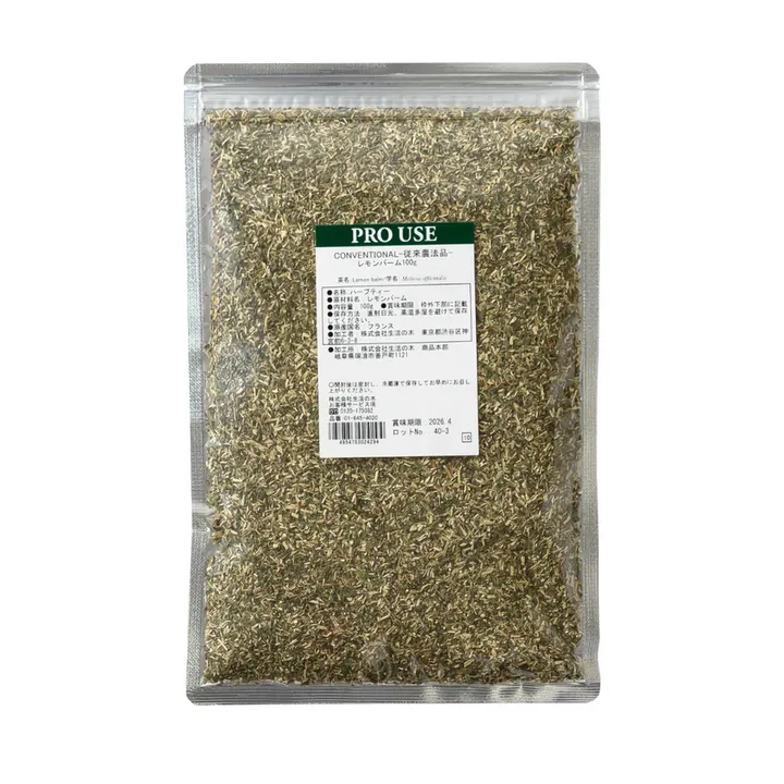 疲れた心をいやしてくれるハーブ。 ミントやレモンバーベナとブレンドすると、おいしくいただけます。 ※カット形状は、ロットにより写真と多少異なる場合があります。 受注生産品は出荷まで7営業日程度いただいております。