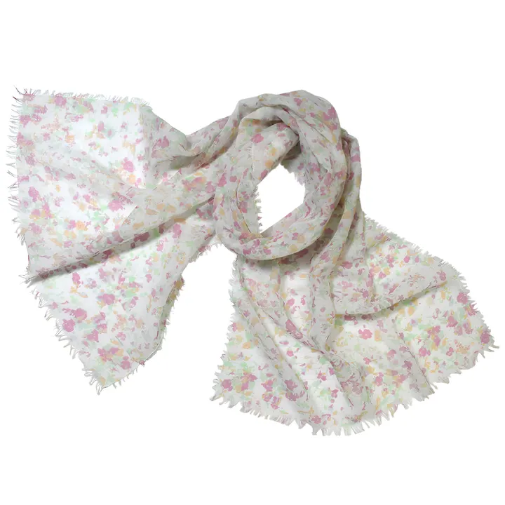 ミューファン銀糸入抗菌ストール 小花柄ピンク