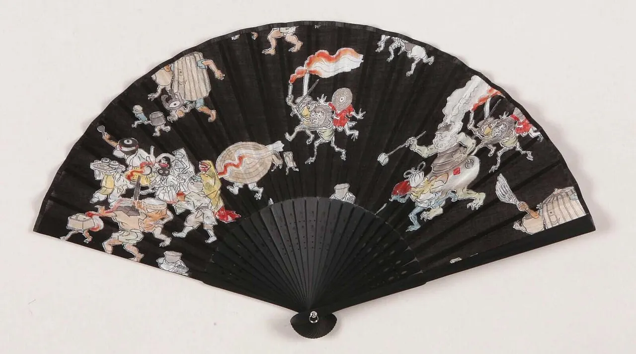 夏の和雑貨 扇子 布製 妖怪づくし 百鬼夜行 クロ