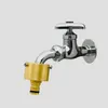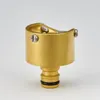 水道蛇口に取り付けて、ホースをワンタッチで接続できる仕様に変更できます。 材質は金属製(真鍮)で、屋外での使用が1年ほど経過すると経年変化で黒ずみが始まり、味わいのある色に変化していきます。 メタルシリーズのパーツでホースリールをドレスアップしてみませんか?金属タイプなので、ハードな使い方にも耐えることができます。 ホースリールのノズルとマッチするように真鍮色にしています。真鍮色はガーデンのアクセントにぴったりです。 ≪取付可能な蛇口≫ ・横水栓(蛇口径14~20mm) ・万能ホーム水栓(蛇口径14~20mm) ・自在水栓(蛇口径14~20mm) ・立水栓(適合寸法指定あり) ※立水栓」については蛇口先端部分の適合サイズに制約があります。事前にサイズの確認を行ってください。 ≪蛇口への接続方法≫ 蛇口への取り付けは、製品に付属している3本のネジをドライバーで蛇口に締め付けて固定します。 ※締め付け過ぎによる水道蛇口パイプ部分の穴あきにご注意ください。 ≪ホースとの接続≫ 蛇口への取り付けが完了したらホース用コネクターがワンタッチで接続可能となります。 ※メタルパーツ同士の接続を推奨します。 ≪経年変化≫ 屋外での使用が1年ほど経過すると経年変化で黒ずみが始まります。真鍮独特の味わいのある色に変化していきます。 ※写真7枚目が約1年間屋外で使用したものです。(使用環境などにより、変化の仕方、変化の速度は変わります。)