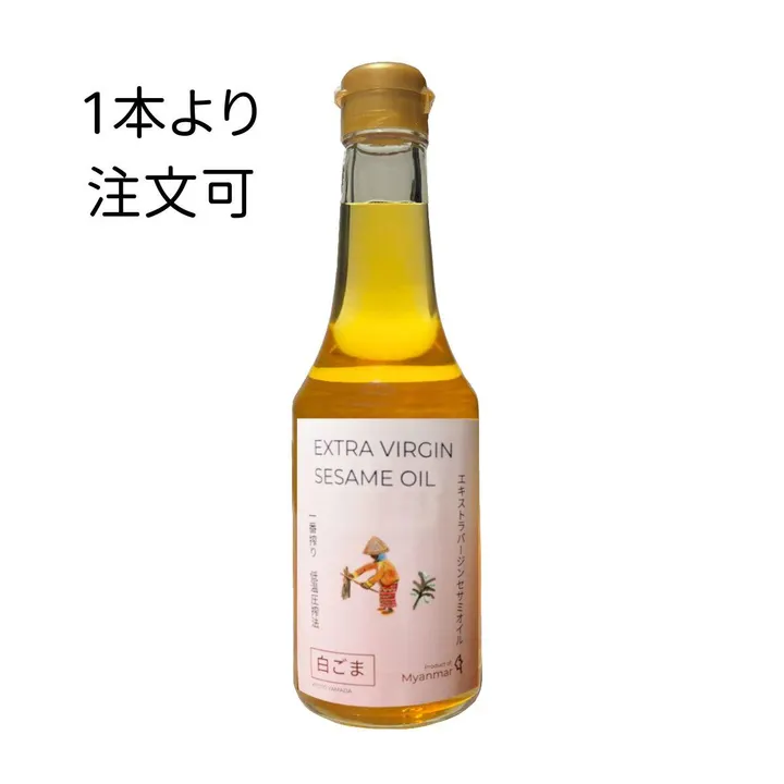 【※こちらの商品は1本よりお買い求めいただけます】 ミャンマー東部シャン州で収穫できる通常のごま粒よりちいさいが 通常の約2倍のセサミンが含まれているのが特徴です。 特別なごまがシャン州では収穫できますが、同時に軍と少数民族との戦闘が激化している州でもあり、 ケシの栽培面積が20%増えていると指摘されています。 これ以上困窮する農家が増えないことを想い、そしてみなさまに想いを届けたく、シャン州の特別なごま粒にこだわりました。 【エキストラバージンごま油とは】 "未焙煎"の白ごまを低圧力で搾ったピュアなごま油です。 一般的な抽出法は5倍以上の圧力がかかり、摩擦熱が発生する分焦げがでて色が濃くなります。 低圧力は非常に手間がかかる製法ではありますが、圧力がとても低いため摩擦熱がほとんどなく、 ごま本来の風味と栄養素をより多く残すことができます。 味はナッツのような甘みがあり、サラダや卵かけごはん、パスタにかける、バゲットにつけるなどに人気です。 料理全般にも使えますが、加熱せずに「生のまま」をお召し上がり頂くのがおすすめです。 ローフードにはかかせないオイルです。 ※太白ごま油との違い※ 未焙煎の白ごまを搾っているのは同じです。が、 太白ごま油は搾ったあとに⇒漂白(脱色・脱臭)しているので色も匂いもなく、ごま旨みもほとんど感じません。日本特有のごま油。 EXTRA VIRGIN SESAME OILは搾ったままの100%ピュアオイル。白ごまを搾った本来の色、匂いも味も栄養素もしっかり残しています。 普段サラダ油やオリーブオイルを使われている方に特に好まれているオイルです。 個人差はもちろんありますが、サラダ油とオリーブオイルよりもさらっとしていることでお客様より好評いただいています。 ※アユールヴェーダとしての使用※ 古代よりインド、スリランカ伝統医療アユールヴェーダでは「未焙煎」「未精製」のごま油が使われています。 私たちのEXTRA VIRGIN SESAME OILはハンドマッサージやフットマッサージにもお使いいただけます。 脱臭脱色されている太白ごま油と比べて、吸収力の高さに違いがあります。 洗い流した後の保湿力にもぜひ注目いただきたいです。