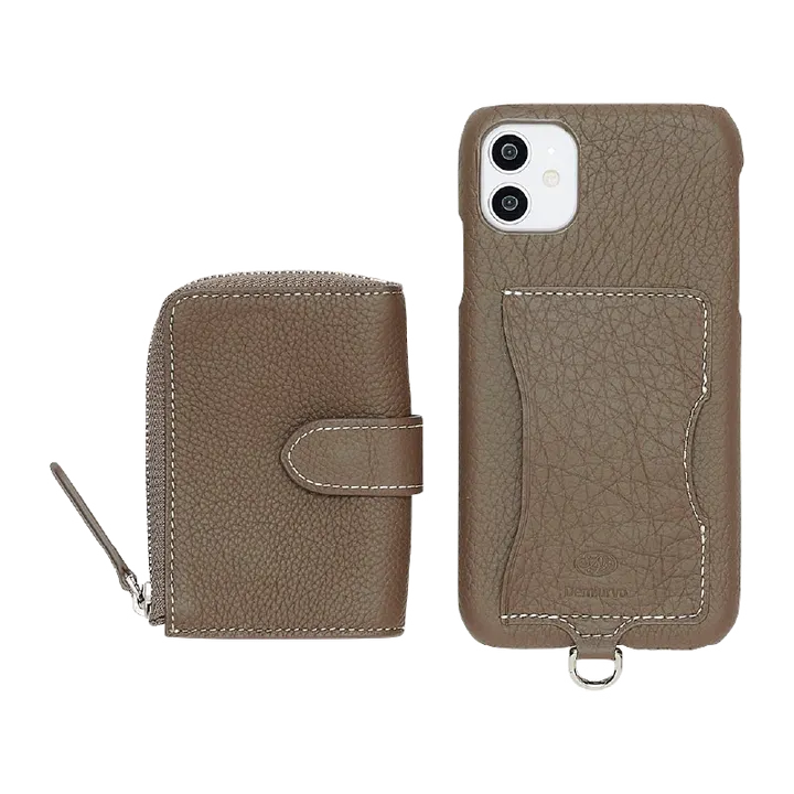 素材は、デミウルーボ の代名詞でもあるフランス産カウレザー。 L字ジップを開けると真ん中にコインスペースがあり、マチが広めで視認性と利便性を兼ね備えています。 コインスペースの両端には、カードや領収書などをドバッと入れることができるポケットがついており、 お札は三つ折り、もしくは4つ折りでしっかり収納できます。カスタムハードケースに装着できるようになっており、 シーンに合わせてスマホと財布をセットで持ち歩くことができます。 装着した状態でもそのままジップが開けられるようになっているので、取り外すことなく使用可能です。 単体としてももちろん、カスタムハードケースとセットでぜひご利用ください。 シンプルなデザインなので男女、年齢関係なくお使いいただけます。プレゼントにも最適です。 <カスタムハードケース> フランス産レザーを使った高級感あふれるレザーハードケース。 カード類を横から入れることができ、 ストラップでぶら下げても落ちないようにサイズ設計されています。 通常のクレジットカードなどは1枚、薄いカードは2枚入れることが可能です。ROND(ロンド)とTROIS(トロワ)をこのカスタムハードケースに装着することが可能となっており単体でも、セットでも様々な使い方ができる万能ケースです。 ※MagSafeはご利用になれません。 ※ストラップは別売りです。 ー仕様ー・素材本体:牛革金具:ニッケル・