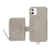 素材は、デミウルーボ の代名詞でもあるフランス産カウレザー。 L字ジップを開けると真ん中にコインスペースがあり、マチが広めで視認性と利便性を兼ね備えています。 コインスペースの両端には、カードや領収書などをドバッと入れることができるポケットがついており、 お札は三つ折り、もしくは4つ折りでしっかり収納できます。カスタムハードケースに装着できるようになっており、 シーンに合わせてスマホと財布をセットで持ち歩くことができます。 装着した状態でもそのままジップが開けられるようになっているので、取り外すことなく使用可能です。 単体としてももちろん、カスタムハードケースとセットでぜひご利用ください。 シンプルなデザインなので男女、年齢関係なくお使いいただけます。プレゼントにも最適です。 <カスタムハードケース> フランス産レザーを使った高級感あふれるレザーハードケース。 カード類を横から入れることができ、 ストラップでぶら下げても落ちないようにサイズ設計されています。 通常のクレジットカードなどは1枚、薄いカードは2枚入れることが可能です。ROND(ロンド)とTROIS(トロワ)をこのカスタムハードケースに装着することが可能となっており単体でも、セットでも様々な使い方ができる万能ケースです。 ※MagSafeはご利用になれません。 ※ストラップは別売りです。 ー仕様ー・素材本体:牛革金具:ニッケル・