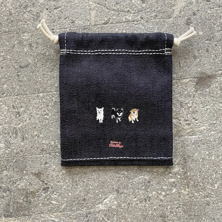 【Mサイズ 巾着】 オリジナルイラスト わんこ巾着 小さい巾着 厚手生地 プレゼントに◎ 柴犬 (約100×120mm)