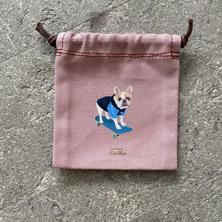 【Mサイズ 巾着】 オリジナルイラスト わんこ巾着 小さい巾着 厚手生地 プレゼントに◎ フレンチブルドッグ
