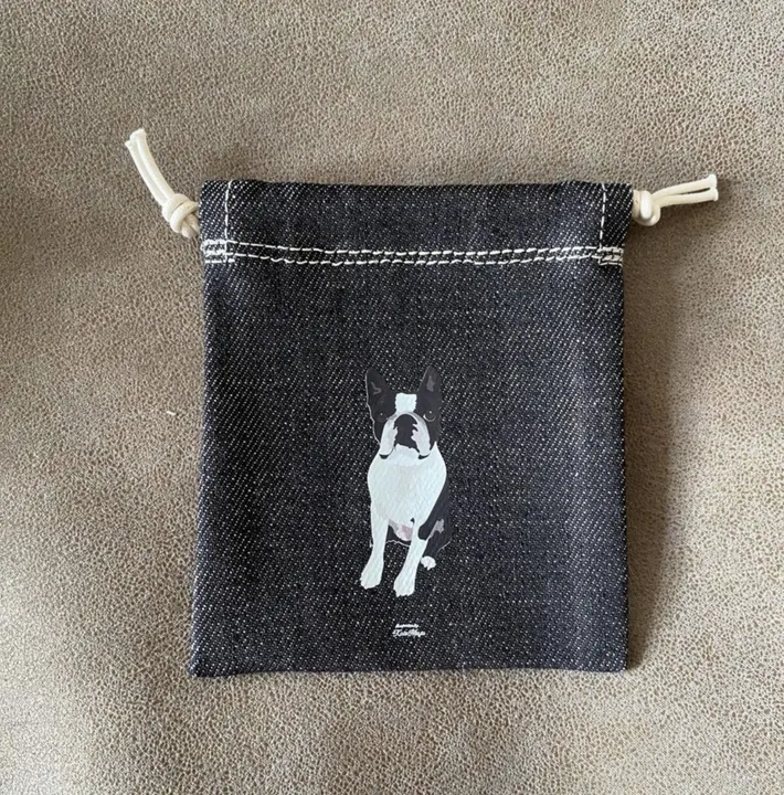 【Mサイズ 巾着 / 厚手生地】 オリジナルイラスト わんこ巾着 小さい巾着 プレゼントに◎ ボストンテリア