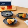 【中皿】ひな菊 5.0寸皿 天の川 美濃焼 取り皿/ケーキ皿 3色展開 ネイビー