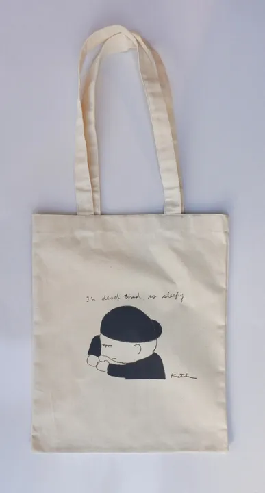 デザイナー脇阪克二さんが生み出したキャラクター「チョビット君」のトートバッグ。 生地はしっかりした無漂白コットン、持ち手が長めなので肩にゆったりと掛けられます。 デザインは「so sleepy」と「RUN RUN  RUN」の2種類。 どちらもなんともかわいらしいです。 「so sleepy」  マイペースなチョビット君、 気ままにやりたいことをやりたいように。 疲れたときは、ゆっくり眠るんだ。 「RUN RUN  RUN」 マイペースなチョビット君。 走る走る、軽やかなリズムにのって。 ルンルン、心のままに自由に。 「チョビット君」は、デザイナー脇阪克二さんが生み出したキャラクター。 私の中にも、あなたの中にもありそうな少しのいたずら心と自由で無邪気な発想を体現する、かわいいマイペースなチョビット君です。 ●デザイナーの紹介  脇阪克二 katsuji wakisaka テキスタイルデザイナー1944年 京都市生まれ。フィンランドのマリメッコ社、ニューヨークのジャック・レノア・ラーセン社などを経て、現在は京都を拠点にSOU・ SOUのデザイナーとして活躍中。