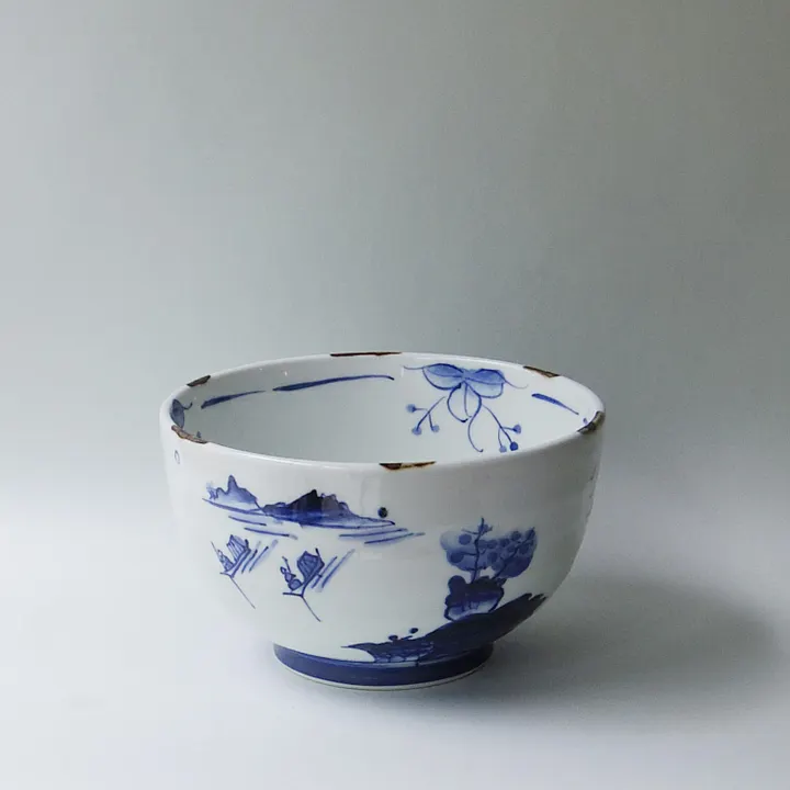 【熟練技の染付山水】 翔武窯 染付山水5.5寸丼