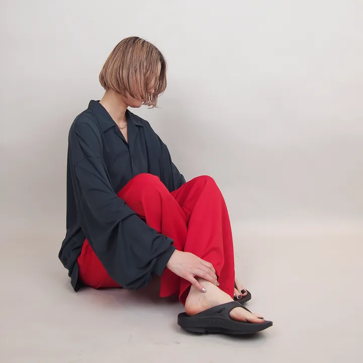 着心地の良さとシルエットの美しさを追求したタックワイドパンツ。 さらっとした柔らかい触り心地で、お肌に優しく馴染みます。 銀成分を練り込んだ糸を使用しているため、抗菌防臭・吸水速乾・接触冷感・UVカット効果が特徴です。 柔らかく、優しい光沢感のある生地がシルエットラインを美しく魅せ、タックによってアクセントも入ることでワイドパンツでありながらすらっとした印象を与えます。 丈感を変えるためにウエストをまくってもラインが崩れません。 ※お色違いも生産可能です。ご希望の際はご相談ください。
