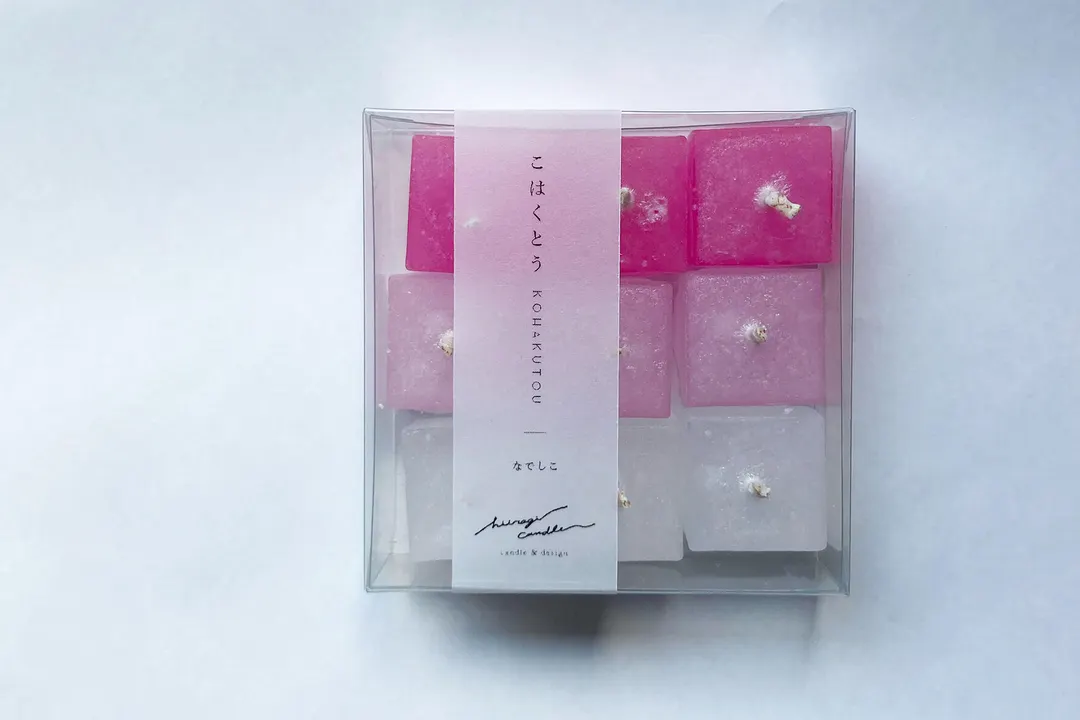 宝石のような、お菓子の琥珀糖をモチーフにしたキャンドル 鉱物や宝石のような、結晶化した表面がとても美しく、 アーティスティックな可愛らしいキャンドルです 20分ほどの小さな灯りの、心身をリセットするのにちょうどよく、 朝の一息や、就寝前の自分時間にお使いいただくのもおすすめです 見た目にも可愛いキャンドルで ちょっとしたギフトにもおすすめです◎ /////////////////////////////////////////////////// お好みの色をお選びいただけます 〈さざ波〉 〈なでしこ〉 〈月光〉 〈夕暮れ〉 無香料なので香りが気になる方、シーンを問わず使用したい方にはおすすめです 灯火の持つ力を体感していただけます ———————— size:縦横ともに25mm 高さ約20mm前後 material:ジェルワックス、パームワックス、HTP芯 燃焼時間:約20分/1個当たり(気温・空調・環境により異なる) ———————— Made in Japan ・・・・・・・・・・・・・・・・・・・・・・・・・・ 『ひいらぎキャンドルの〈designed〉』 「デザイン」に焦点を当てた、 初心者さんにもおすすめの遊び心のあるキャンドル カラフルな色使いのキャンドル 徹底的にシンプルにこだわったキャンドル ひいらぎキャンドルの『designed』シリーズは、 「デザイン」にこだわったキャンドルです 色遊びをしたり、モチーフ遊びをしてみたり 個性的なフォルムのキャンドルが出来上がり! もちろん、灯りの美しさも計算した作りで インテリアとしてだけでなく、是非そのヒカリを楽しんでください ・・・・・・・・・・・・・・・・・・・・・・・・・・ ひいらぎキャンドルでは、 キャンドルは一点一点全て手作業で作成しています。 キャンドル本体の製作だけでなく、ラベルやパッケージのデザイン、シールの貼り付け、 梱包など、キャンドルが生まれるところから旅立つまでの間の全ての制作作業を 自身で行なっております。 【ご注意点】 <こちらの商品は受注生産になります> ・香りの良い新鮮なものをお届けする為、注文を頂いてからお作りしています ・1つ1つ丁寧に作成しておりますがハンドメイドの為に画像と同じ作品は作れません 手作業のため大きさに多少の誤差・お色味や形状が若干異なる場合がございます ・お客様よりご注文を頂いてから、すぐに製作に入らせて頂きます 途中でのデザインや素材など一切の変更、製作のキャンセルはお受けすることが出来ません ・注文日より1週間以内に発送しておりますが、 お急ぎの方・ご希望納期のある方は必ず事前にお知らせ下さい。 配送地域、交通事情、素材の在庫等の理由により遅延する場合がございます お届けまでに2週間ほどかかる場合もございます どうぞ余裕を持ってご購入くださいませ ○火を取り扱う製品となります。「attention」という注意事項を同封致しますので、 必ずお読みいただきご使用下さいますよう宜しくお願いいたします。 ※当店のキャンドルをご使用の上で起きた事故についての責任は負いかねます※ 予めご了承ください