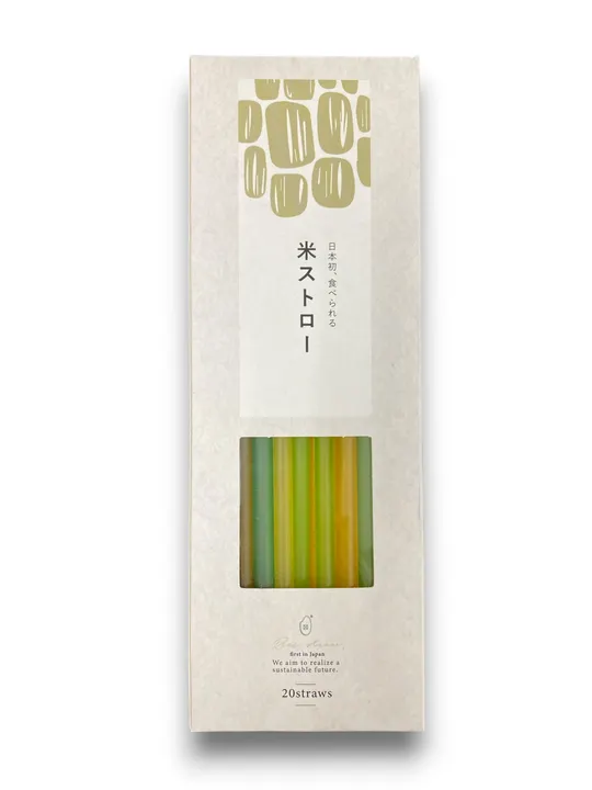 お米でできた 米ストロー 3個セット サンプル 小売用パッケージ 1箱 20本入 カラフルアソート