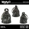 素材:ピューター合金(錫) 付属品:ポーチ 英語説明書  本物のアメリカBRAVO BELLS社製ガーディアンベルです。 MADE IN USA アメリカ製 交通安全 魔除け 御守り ガーディアンベル アメリカのライダーの間には、事故や、転倒の原因は「道路にひそむ悪魔」によるいたずらだという伝説があります。悪魔は走る者に悪戯やトラブルを運んできます。このベルは美しい音色で悪魔たちを追い払うと言われ愛されています。そんな悪魔のいたずらを防ぎ、御守りとなるのが、守護者のベルという意味を持つガーディアンベル。日本でも鈴の音(ね)は神道では魔除けの音と言われています。ピューター製の鈴でいい音色でガーディアンベルはデザインも様々あります。またガーディアンベルにまつわる伝説として、プレゼントとして送られたベルの効果は、自分で手に入れたものの2倍になると言われています。 それゆえに彼氏・彼女・友達・家族へのプレゼントとしての人気も非常に高まっています。シルバーアクセサリーのようにおしゃれに装着できて素敵な音色を奏でるガーディアンベル。バイカー以外にも自転車や旅・交通安全のお守りとしてお使いいただけます。カバン・ランドセル・キーホルダー・ペットの首輪等に付けてお使いください!!※タイラップ等でバイクのフレームにも簡単に取り付けできます。 アメリカンモデルだけではなく、旧車ファン、レプリカライダーまで、さらにバイクだけでなく、自転車や車にもピッタリな御守りとなっています。アクセサリーとしても人気で、アイディア次第で車体だけでなく、キーホルダーや鞄など、どこにでも付けておしゃれに楽しめます。