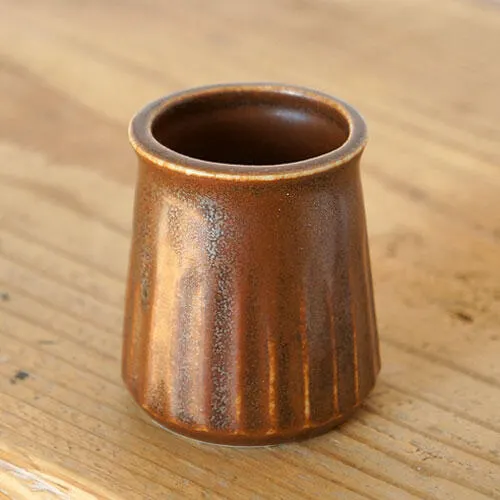 ひだの模様がスカートがひらめいているような女性的な形状。 テーブルの上をシックに彩ります。 指先に土のふんわりとした感触が気持ちのよい卓上容器。
