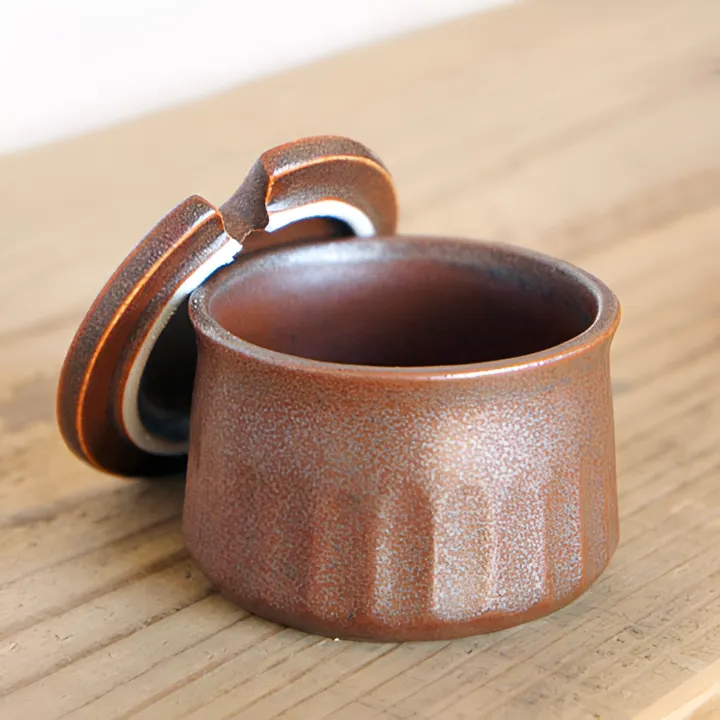ひだの模様がスカートがひらめいているような女性的な形状。 テーブルの上をシックに彩ります。 指先に土のふんわりとした感触が気持ちのよい卓上容器。