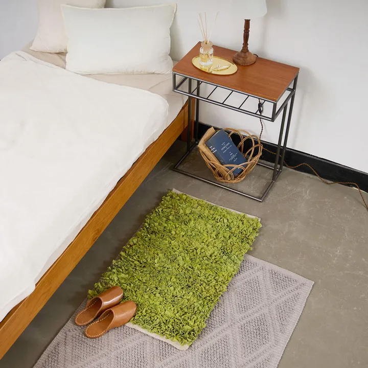 残布を使った 裂き織りのフリルマット GN(グリーン)