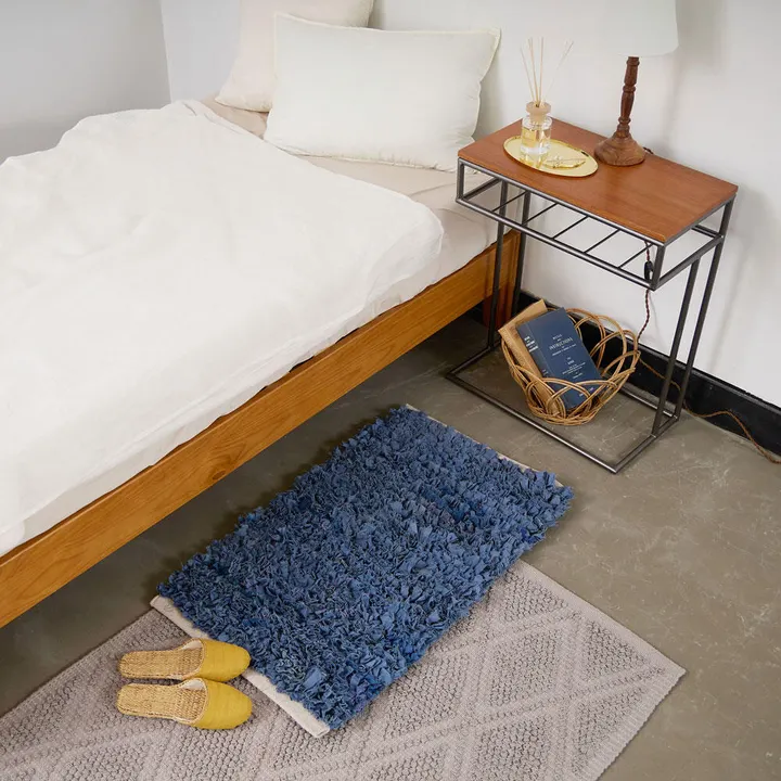 残布を使った 裂き織りのフリルマット BL(ブルー)