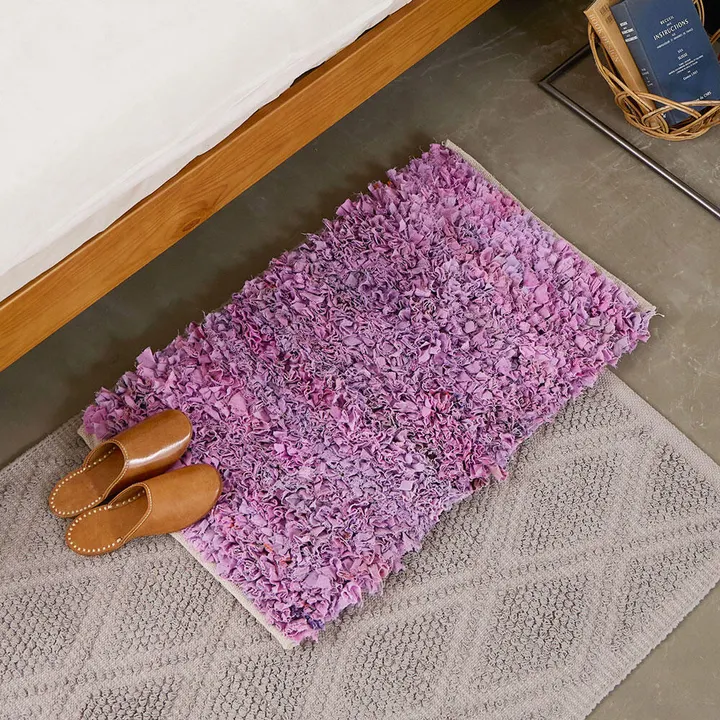 【商品の説明】色とりどりの花々が楽しくおしゃべりしているような、お花畑をイメージしたマットです。明るい色合いで生活空間を鮮やかに彩ります。インドの縫製工場で出た残反(生地)やストックファブリックなどを無駄なく使用するために、染めなおして作った裂き織りのフリルマット。残反を使用することで綿資源の節約や廃棄布ロスの低減になり、地球環境にやさしいアイテムです。 【素材の情報】使われる生地柄によって染め上がりに個体差があります。手作りで織り上げていくためひとつひとつ表情が異なるのも魅力です。素材の特性上、水濡れや摩擦による色落ちが避けられません。床への色移りにより汚れる場合がありますのでご注意ください。 ★【新規出品】商品はこちら ★【人気】商品はこちら 【インテリア】【ファブリック】【マット】