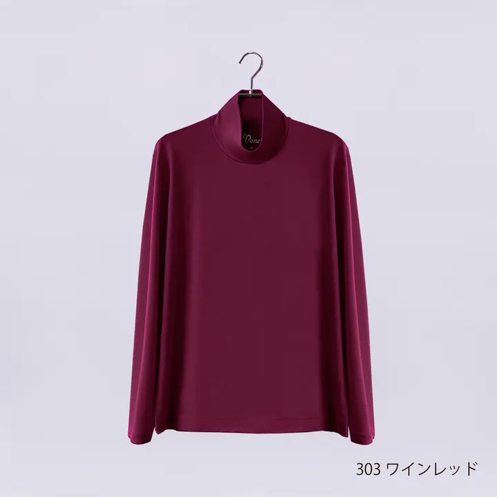メリノウール ハイネック長袖Tシャツ 303ワインレッド LLサイズ