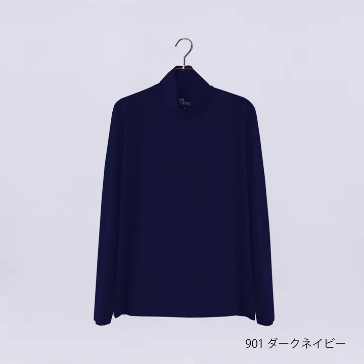 メリノウール ハイネック長袖Tシャツ 901ダークネイビー Lサイズ
