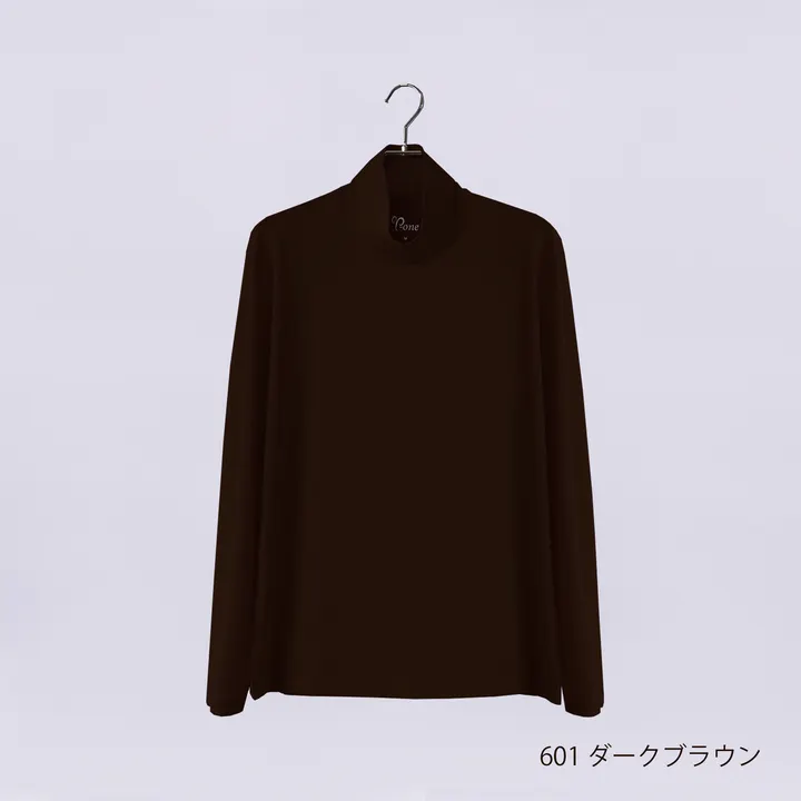 メリノウール ハイネック長袖Tシャツ 601ダークブラウン Lサイズ