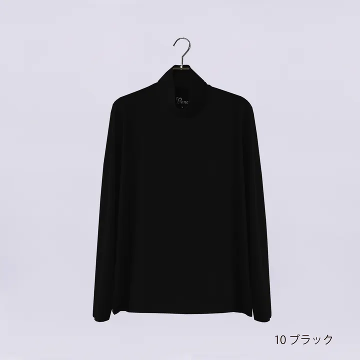 メリノウール ハイネック長袖Tシャツ 10ブラック Lサイズ