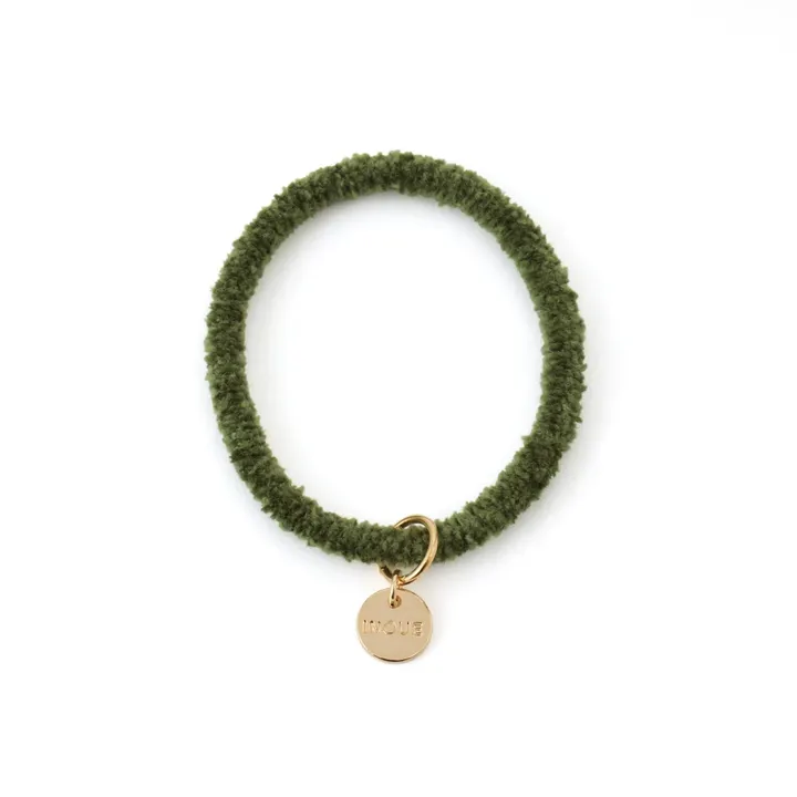 カジュアルでキレイめな印象のモコリングに小さめタイプが登場 「カーキグリーン」は実り多く、うつろいゆく季節を感じる、深みのあるカラー。コートなどの色と揃えてまとめたい時にも。 カジュアルでキレイめな印象のモコリングを、小さめサイズにしました。モコモコの繊維が優しく髪をキャッチしてくれるので、ゆるく結んでも取れにくいヘアゴムです。モコモコ部分は優しく滑らかな仕上がりなので、髪に絡まる心配もありません。デザインにちょっと変化をつけたい方、ショートボブの方、髪の毛が細い方にもおすすめです。 オリジナルチャーム付きなので、うっかり机に置き忘れてもひと目で自分のものと分かります。 1本1本、手作業でゴムリングの接着加工をしています。金属のパーツでゴムをかしめているヘアゴムの場合は、髪の毛が引っかかると切れてしまいますが、当社の製品は、つなぎ目がほとんど分からず、髪の毛にも優しいです。 直径:約35mm、太さ:約4mm、プレートの直径:約8mm 材質:アクリル・ナイロン・天然ゴム・真鍮 日本製