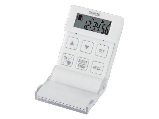 小さくて携帯しやすく、時間をバイブレーション(振動)またはブザー音でお知らせするタイマー。会議、図書館など音の気になる場所での使用に。電子ブザー音とバイブレーションの切り替え可能。ストラップ取付穴あり