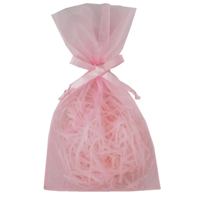 オーガンジーラッピング巾着ポーチLLサイズ 片面オーガンジー裏面不織布ポーチ 40枚入り LS704-S4 ピンク