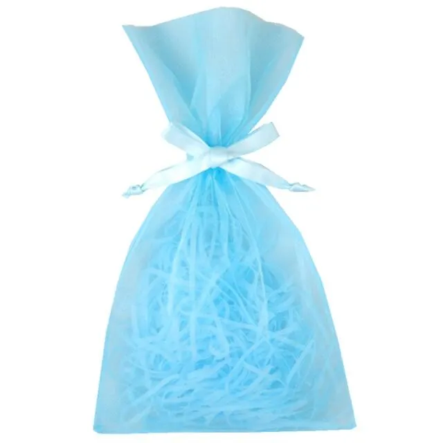 オーガンジーラッピング巾着ポーチLLサイズ 片面オーガンジー裏面不織布ポーチ 40枚入り LS704-S4 ライトブルー