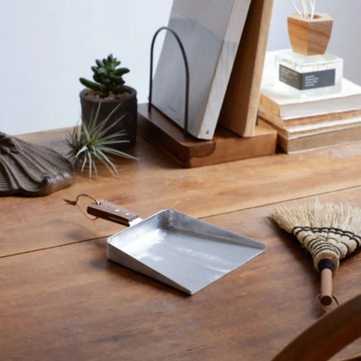 軽くて丈夫なアルミニウム(アルミ)と、耐久性に優れたアカシアウッドを組み合わせたミニちりとりです。 デスクまわりで消しゴムのカスを掃除したり、ダイニングテーブルでは食後に食べこぼしをサッと掃除したり…。デスクブラシとセットで常備しておくと、ちょっとした掃除になにかと役に立つアイテムです。 アカシアウッドの持ち手はレザーの紐付きなので、ほうきと一緒にかけて見せる収納としてもインテリアとして様になります。