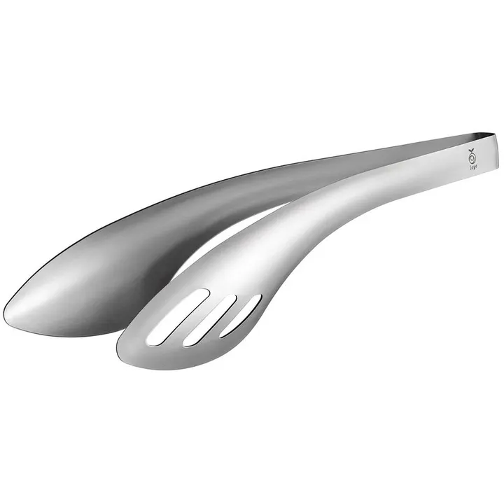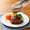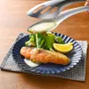 食材を包み込むようにつかみ、大振りな食材もしっかりつかめます。片側が深くなっていてソースをすくえるので、調理や盛り付けのちょこっとソースがけに便利。