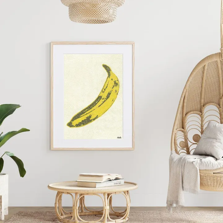 【現代アートポスター】バナナ スープ缶 アンディウォーホル ちぎり絵 貼り絵 ポップイラスト A2(L) フレームセット:無垢 56.1×74.3cm