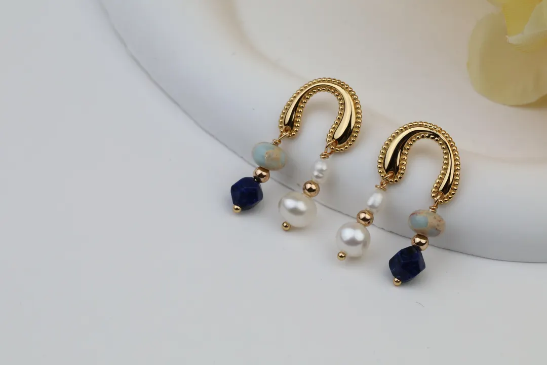 ホースシューデザインが洗練された美しさを纏うピアスです。 ラピスラズリと淡水パールの素敵な組み合わせにより、エレガントでありながら個性的な印象を与えます。 ※天然石は自然のものですので、大きさや色、質感に個体差がございます。予めご了承ください。 【E01251-2】 ■ 発送・注文に関する情報や注意事項 ご注文後、迅速に発送手続きを行います。商品の到着までに若干の時間がかかる場合がありますので、予めご了承ください。サイズ変更や返品については、商品詳細ページでのご確認をお願いいたします。 #ラピスラズリ #淡水パール #K18ゴールドコーティング #フォーマルスタイル #カジュアルスタイル #日常使い #アクセサリー