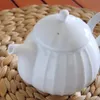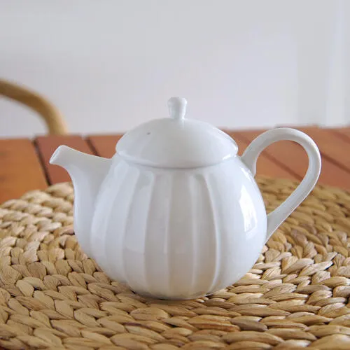 とても澄んだ白磁で、左右にあしらわれた縦のラインが良いアクセントとなっています。スタンダードなカタチで飽きがこずに末長くお使いいただけるかと思います。目の細かいカップ茶こし網がついているので、別途ティーストレーナーを用意する必要はございません。
