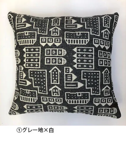 ジャガード織 クッションカバー ”Town" タウン 小サイズ グレー地に白模様